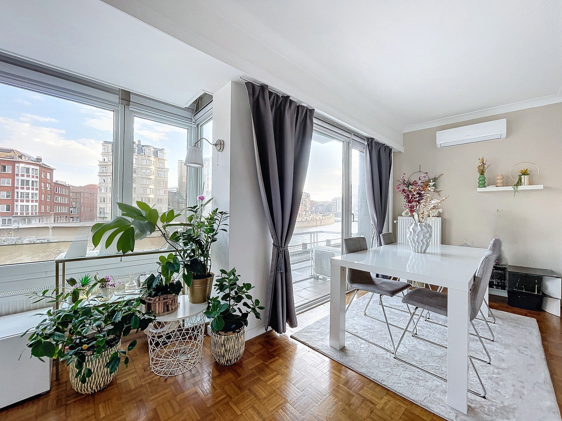Le salon et la salle à manger bénéficient d'une vue exceptionnelle sur la Meuse, offrant un spectacle changeant au fil des saisons.