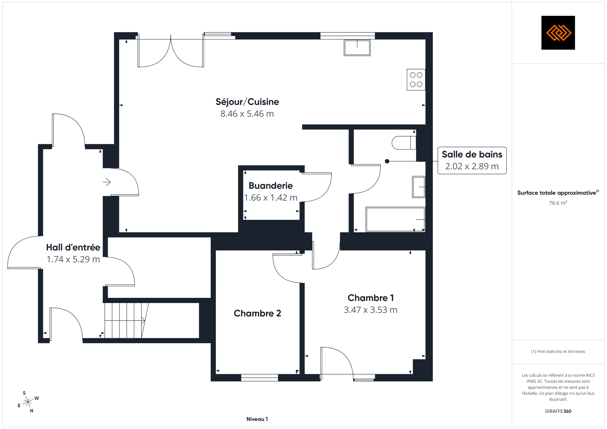 - Surface de la salle de séjour 46 m²