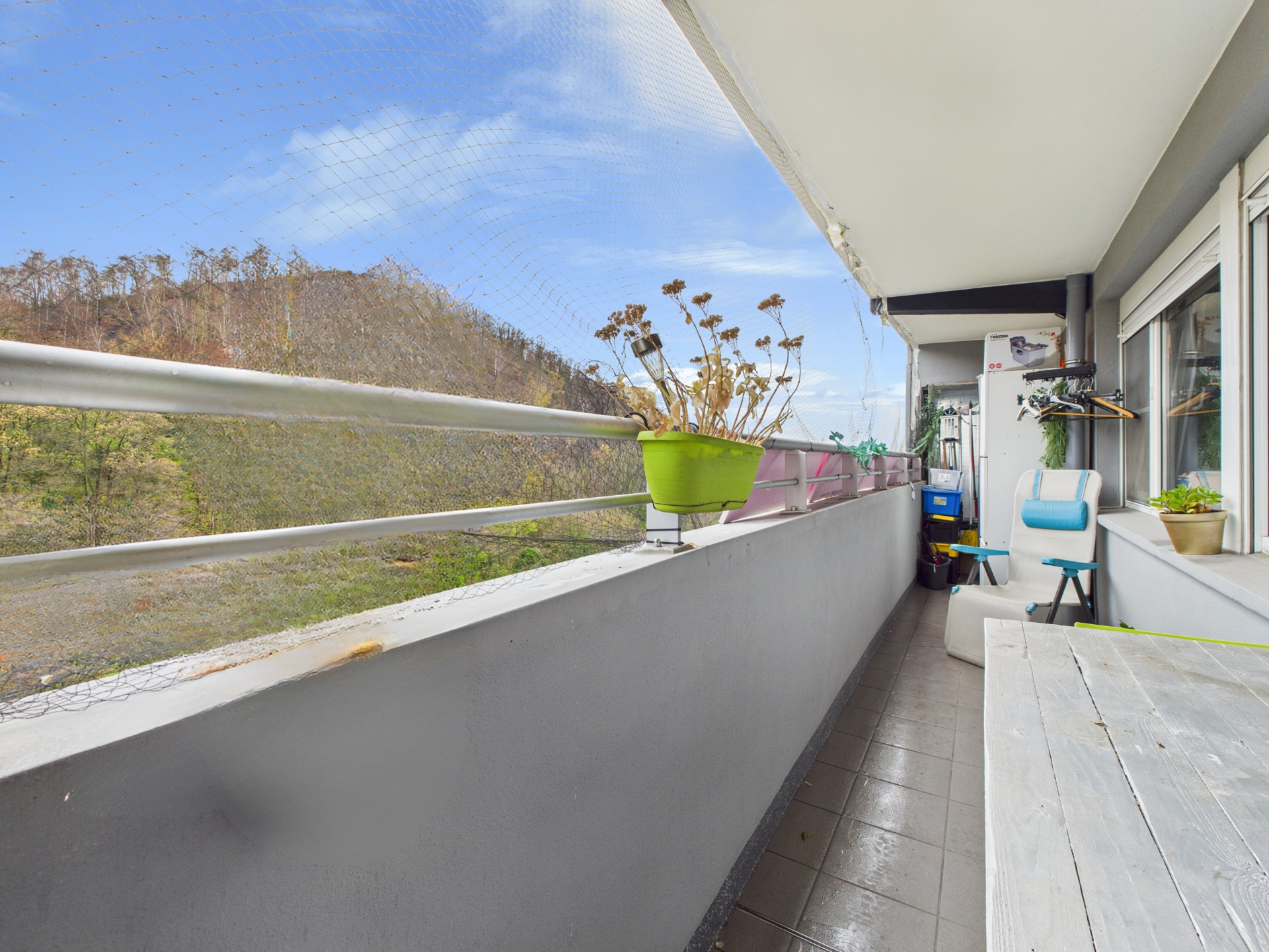 L’appartement se compose d’un séjour lumineux, baigné de lumière naturelle et offrant une vue dégagée, idéal pour un espace de vie agréable au quotidien. La cuisine semi-équipée est fonctionnelle et conviviale, avec suffisamment d’espace pour les repas du quotidien. L’appartement dispose également d’un balcon, offrant un espace extérieur appréciable pour profiter de l’air libre au quotidien, avec un accès direct tant depuis la cuisine que depuis la chambre parentale.