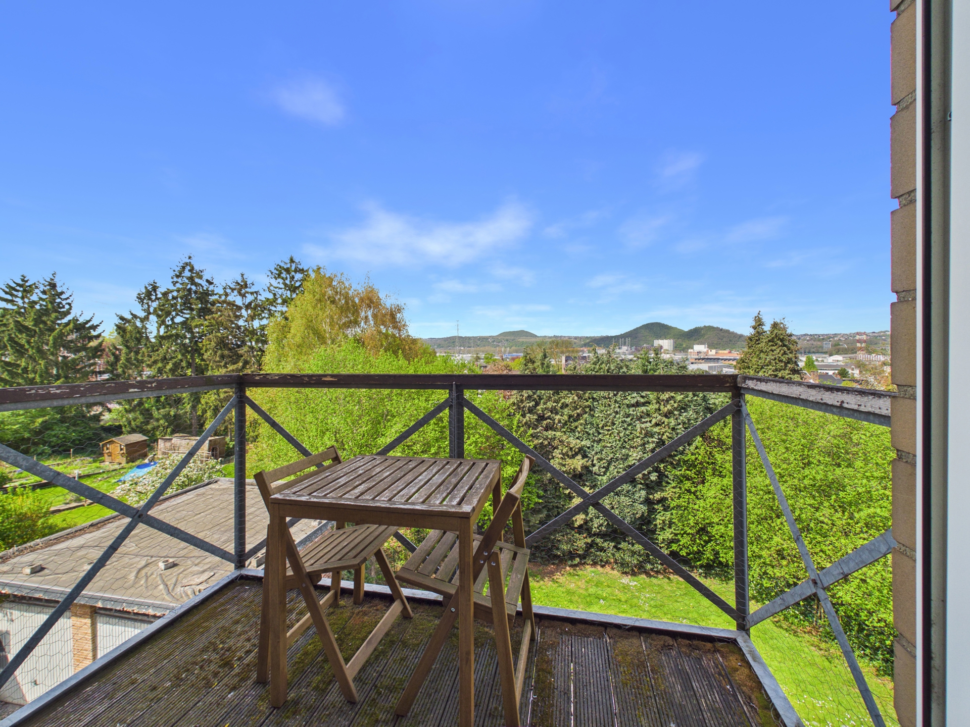 À l’extérieur, vous profiterez d’un petit balcon avec une vue dégagée, parfait pour vos moments de détente.