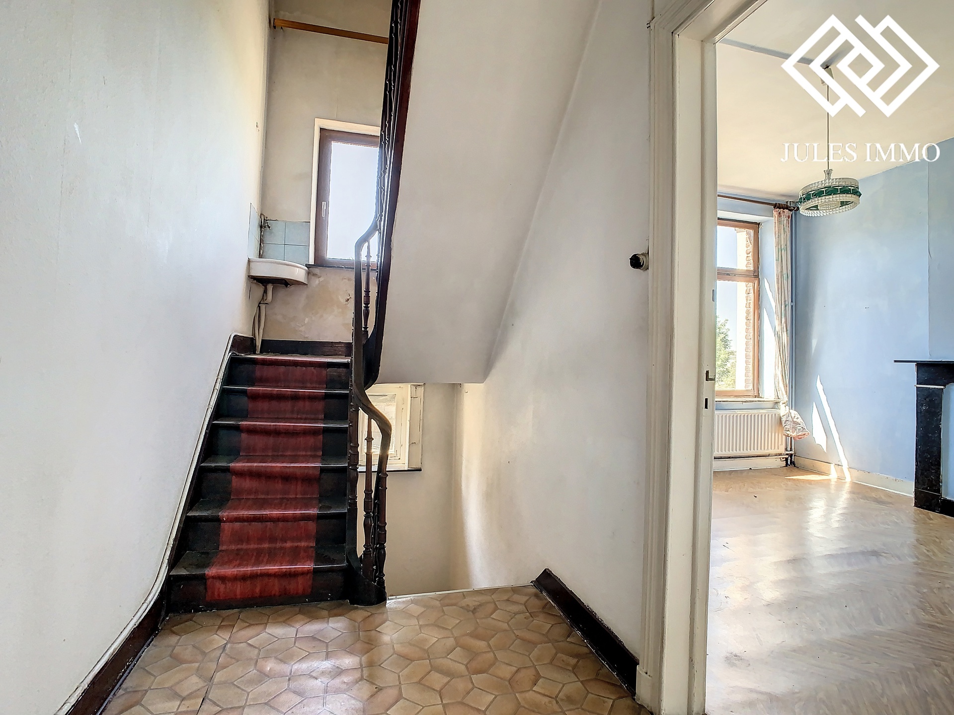 JULES IMMO a le plaisir de vous présenter cette maison à rafraichir d’une superficie habitable de 150 m² (hors caves) située sur les hauteurs de Seraing. Le rez-de-chaussée possède un séjour/salle à manger lumineux, un vaste hall donnant accès à l'étage supérieur et/ou au sous-sol, une toilette individuelle, une cuisine, une salle de bain, ainsi qu'une terrasse couverte permettant d'accéder au jardin. Le premier étage dispose quant à lui d’un hall de nuit, desservant deux vastes chambres. Le dernier étage permet d'accéder aux deux chambres restantes. Il y a également une cave servant de buanderie. Venez poser vos valises dans cette agréable maison. Les avantages: la localisation, RC réduit, double vitrage partiel, gaz de ville, ainsi que beaucoup d'autres avantages, ... RC: inférieur à 745€ (possibilité de frais réduits + réduction de l’abattement). Offre à partir de 139.000 € (sous réserve d’acceptation des propriétaires).