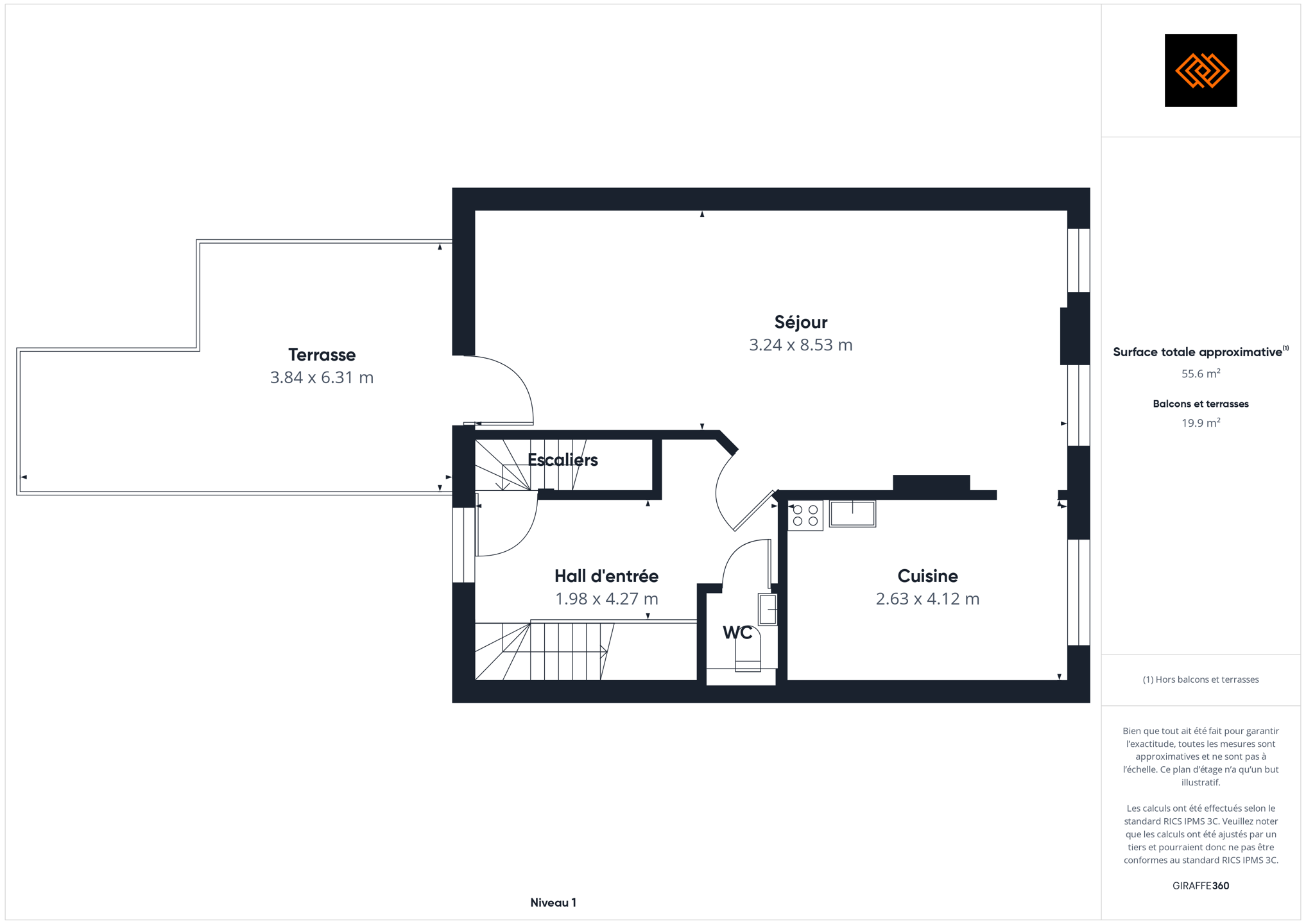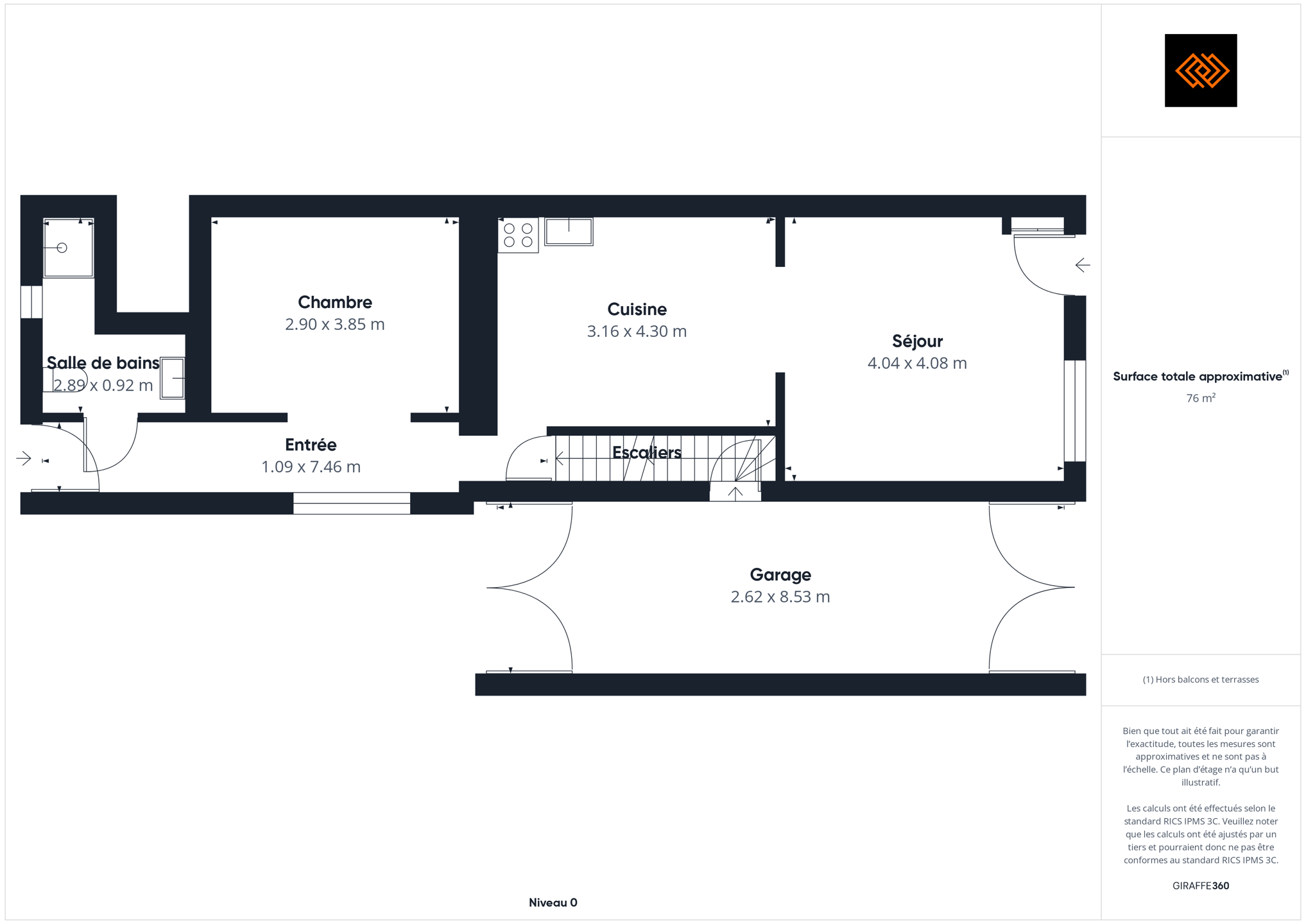 - Surface de la salle de séjour 28 m²