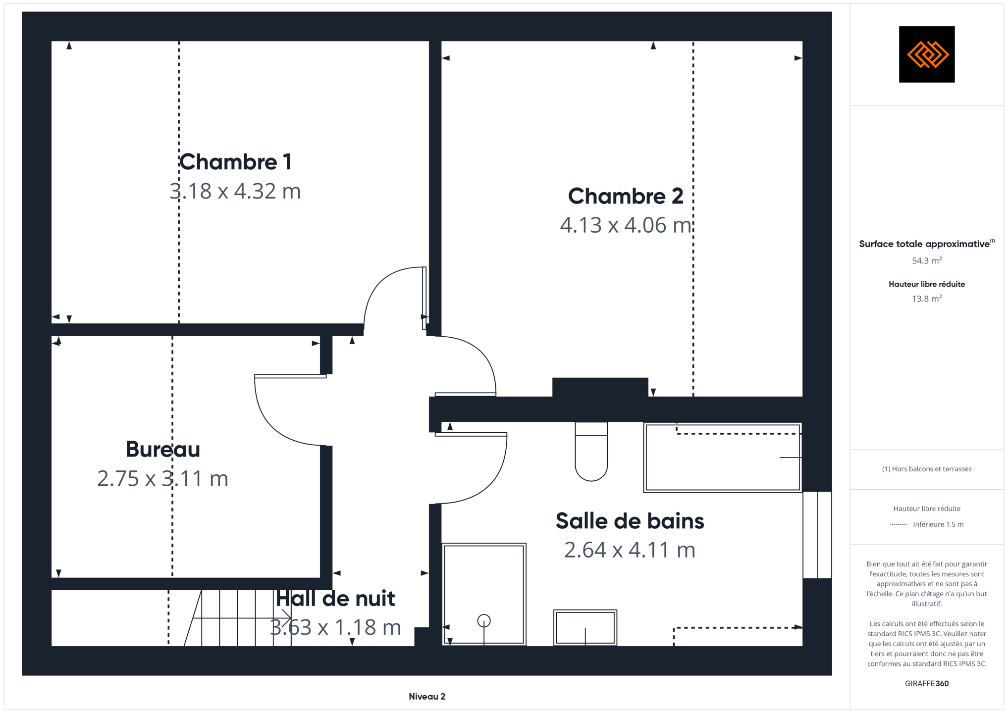 - Surface de la chambre 3 13 m²
