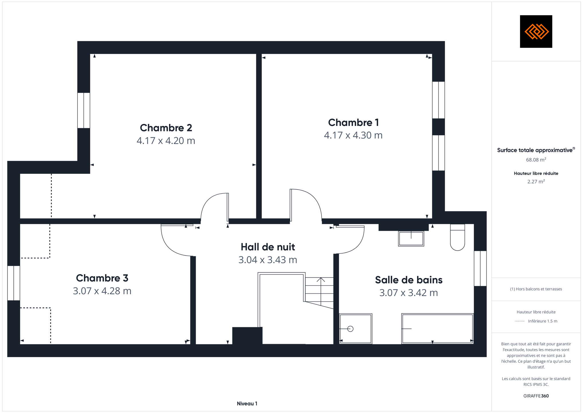 - Surface de la chambre 2 17 m²