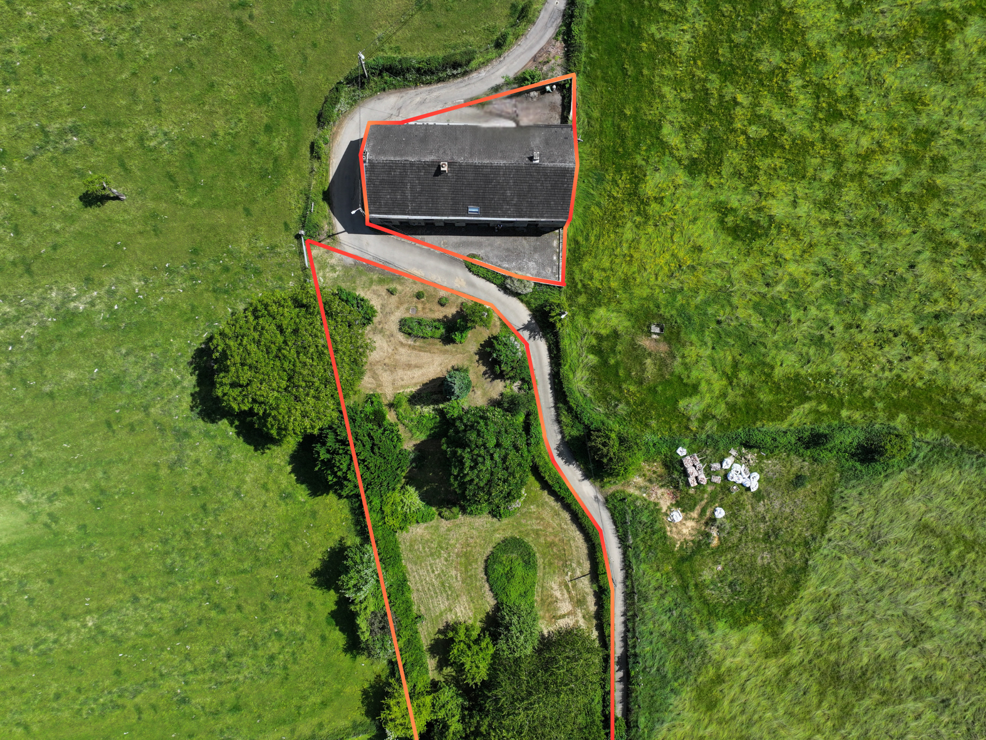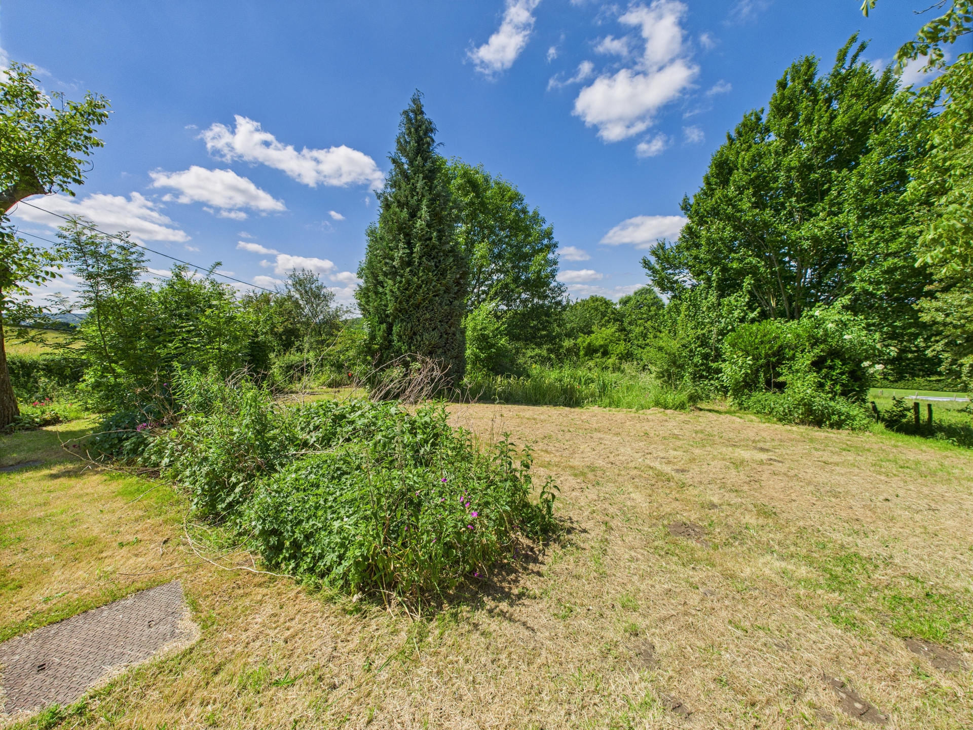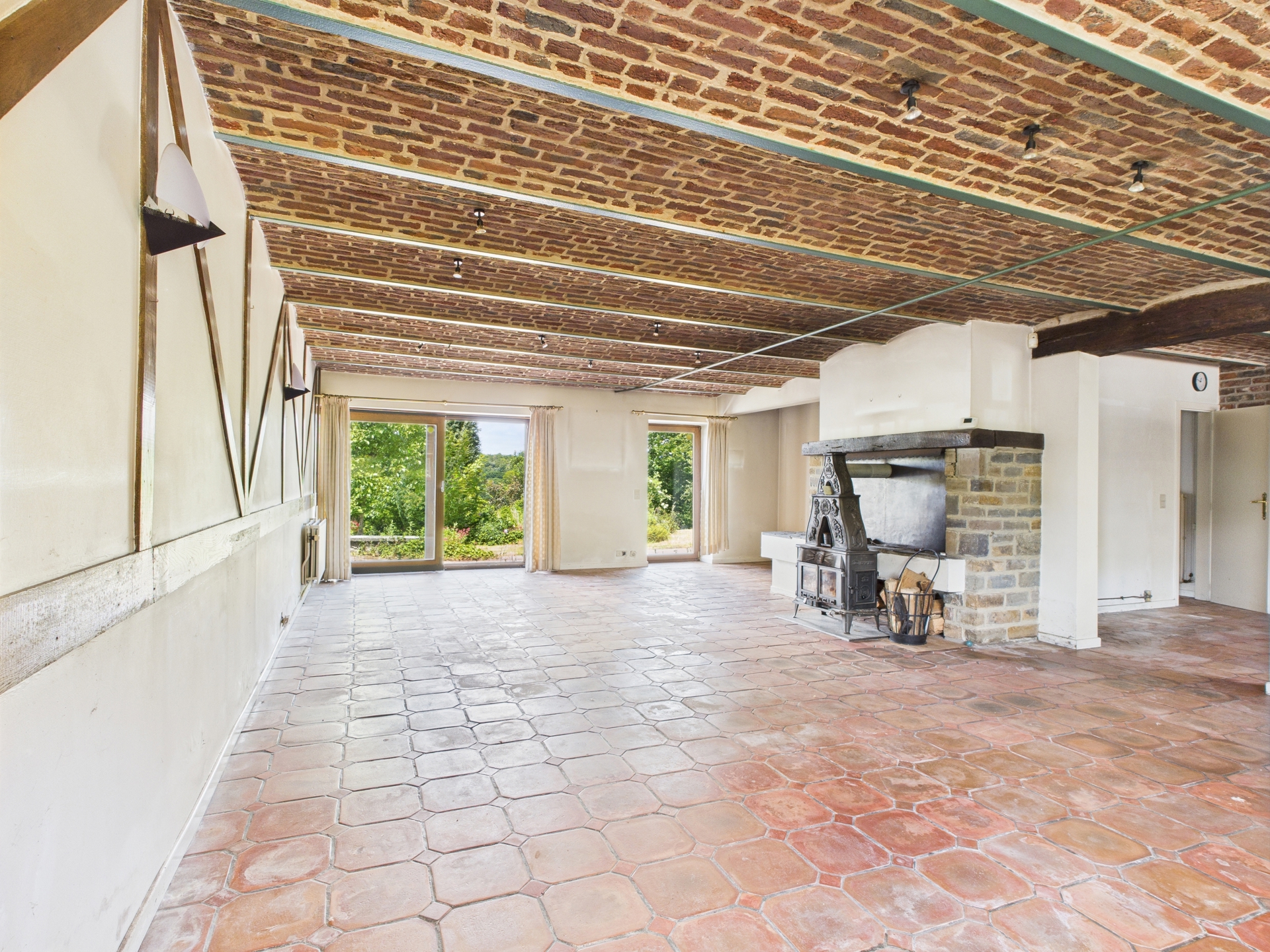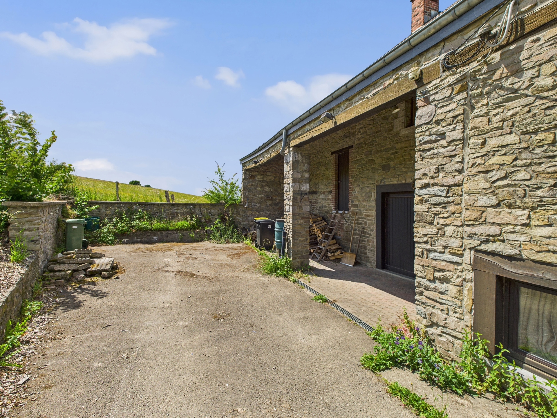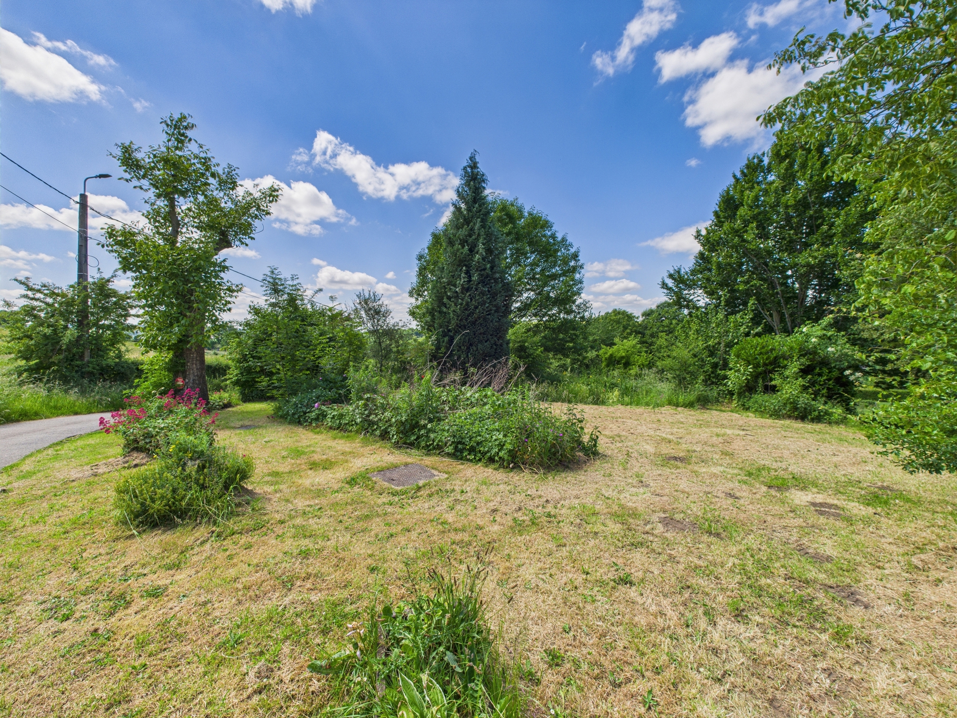 À l’extérieur, vous profiterez des places de parking et un jardin de 1.776 m², situé de l’autre côté d’une petite rue de campagne, offrant un bel espace de détente dans un cadre bucolique et paisible.