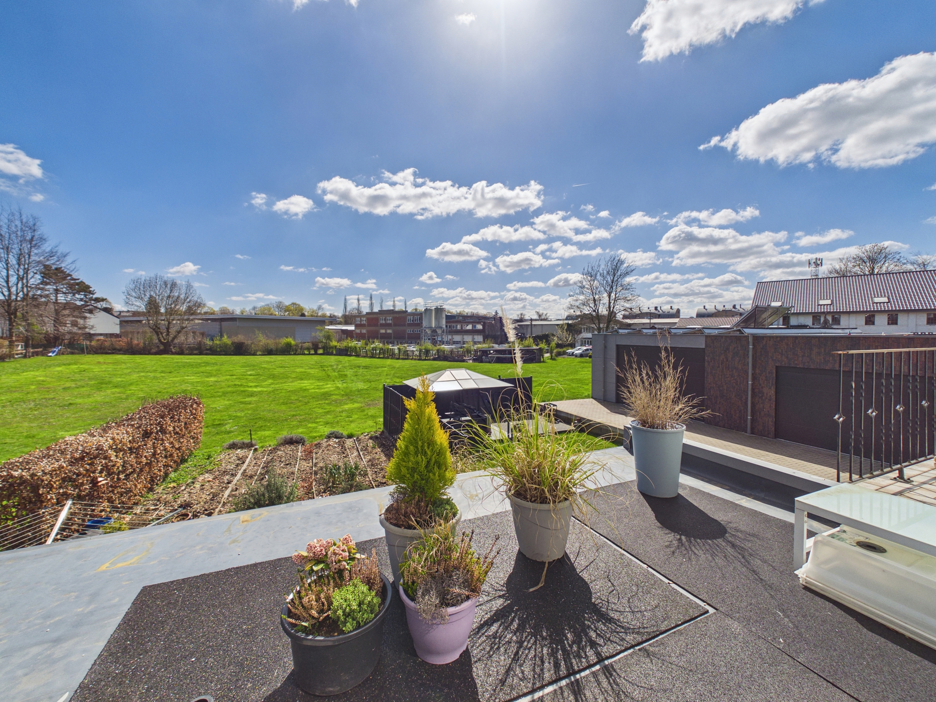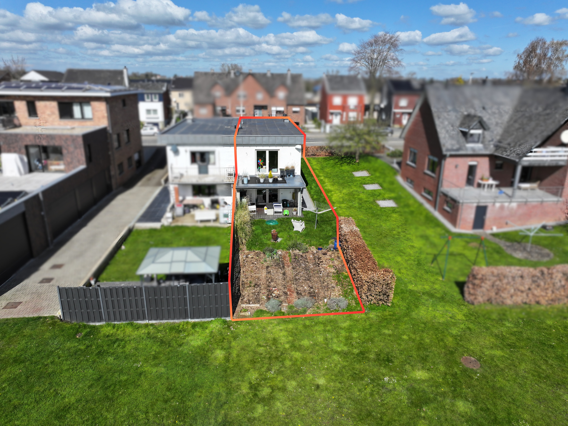 À l’extérieur, la propriété dispose d’un jardin bien orienté et d’une terrasse couverte, offrant un cadre de vie agréable et fonctionnel.