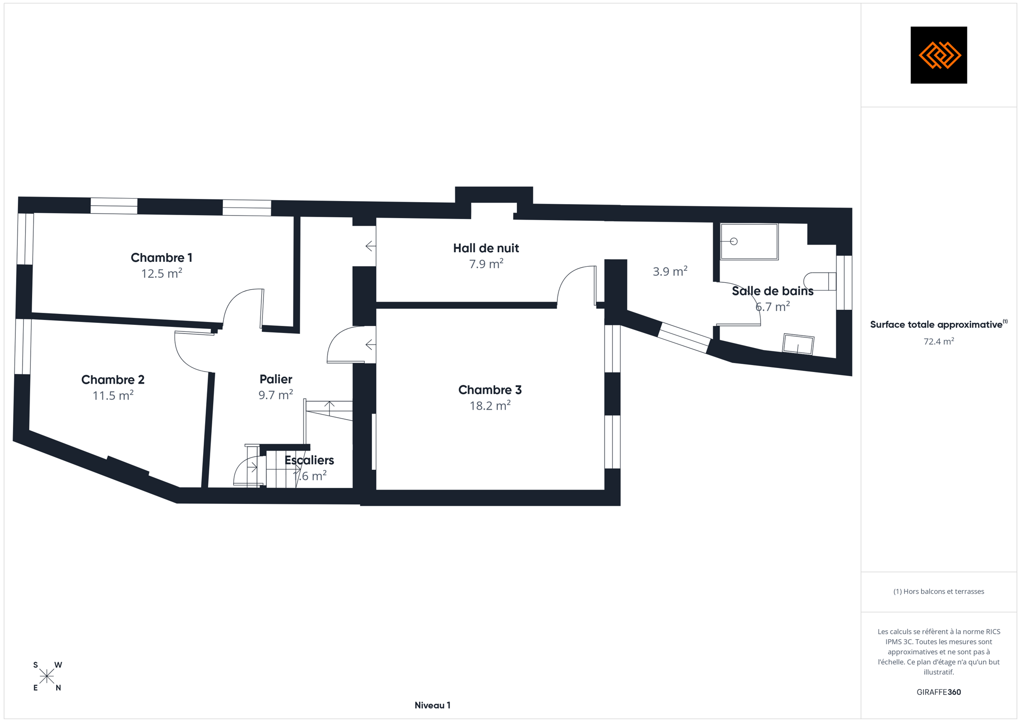- Surface de la chambre 3 12 m²