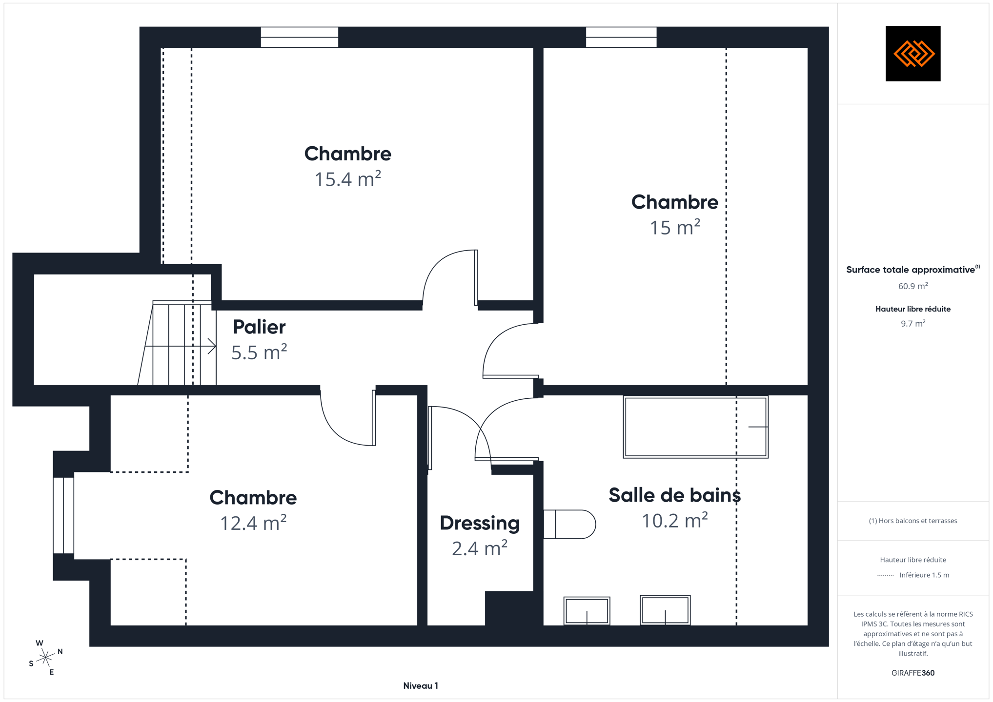 - Nombre de salles de bain 1