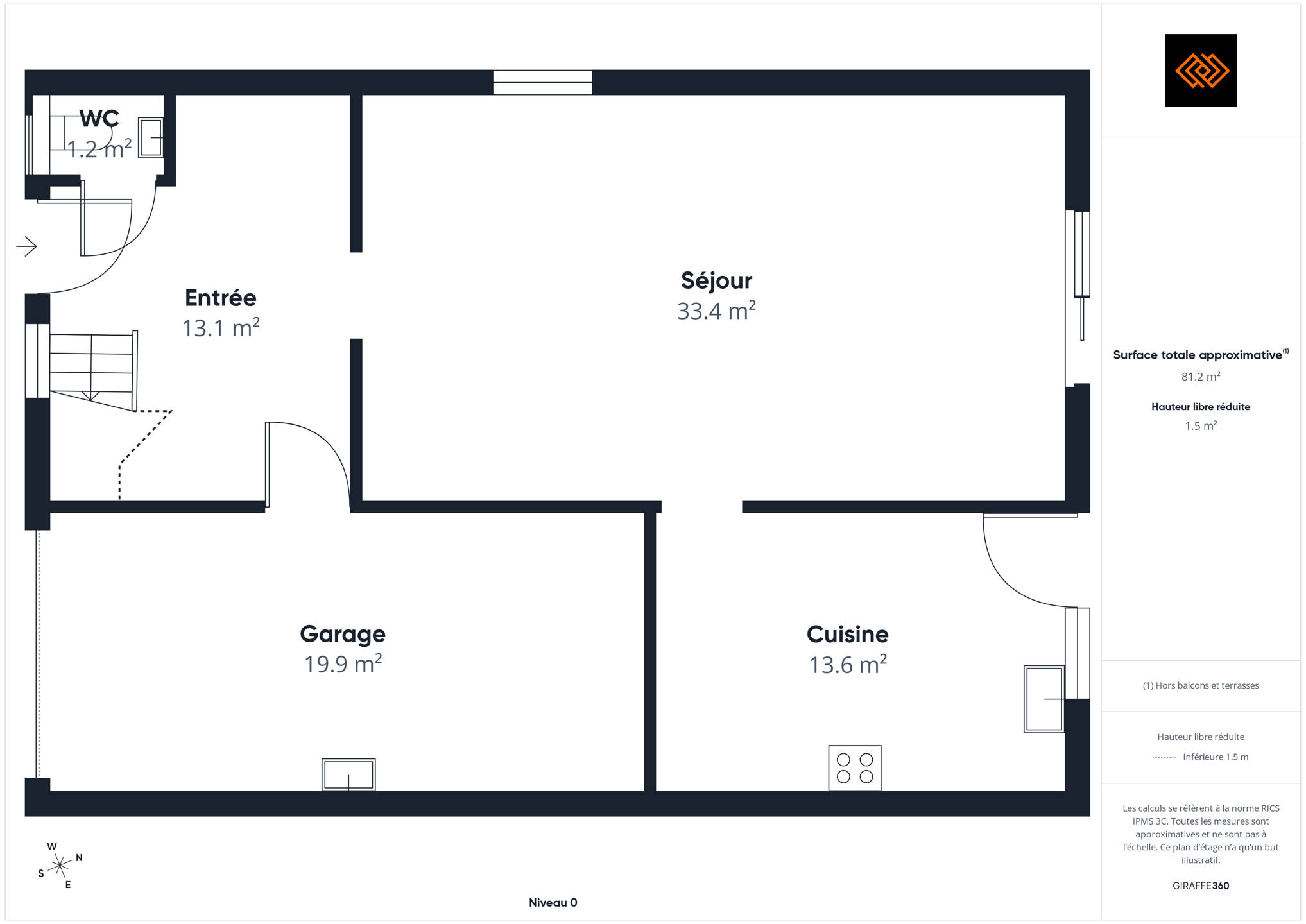 - Surface de la salle de séjour 33 m²